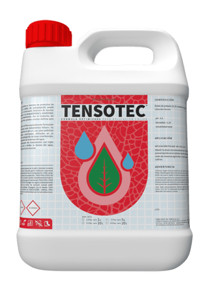 TENSOTEC es un coadyuvante, que regula el pH del agua, facilitando tratamientos foliares efectivos y seguros. Su fórmula innovadora nutre, regula el pH e inhibe la dureza del agua, optimizando la eficacia de los tratamientos agrícolas.